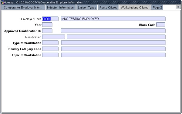 | Co-op Employer? | A1 | This field indicates whether this employer participates in co-operative training. This is a display field only and is generated from the indicator on {GCS-22}. |