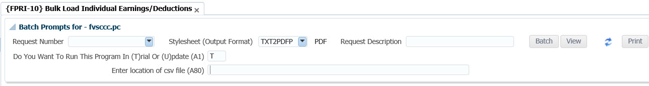 option may be used to load Individual Earnings/Deductions {FPRI-2} from a comma-delimited file.