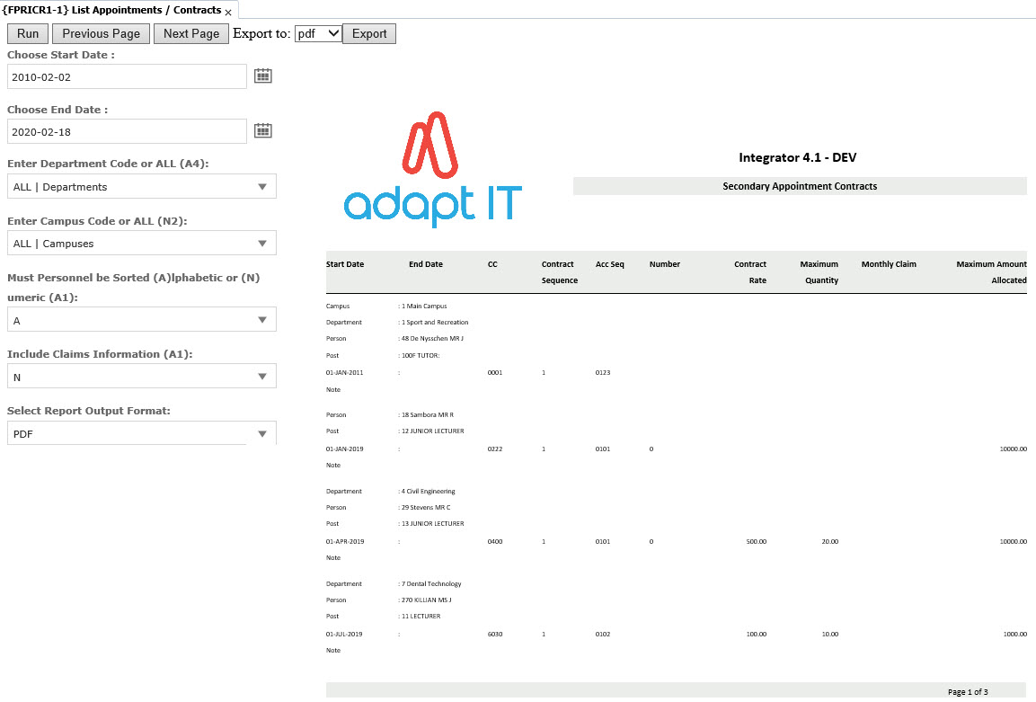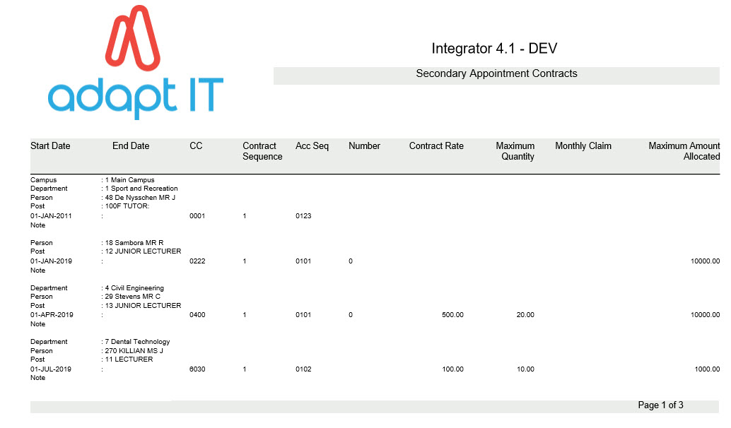 | Per Campus, Department, Person, Post and Contract sequence. |