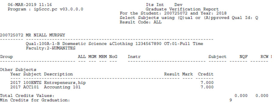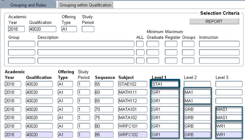 that the student enrolled for with the same Qualification code. Only