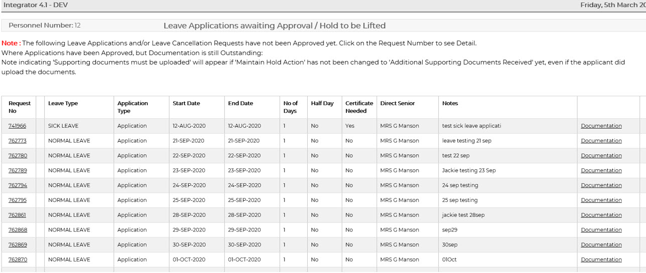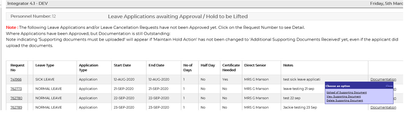 generated to HR, advising that the documentation has been uploaded, by clicking