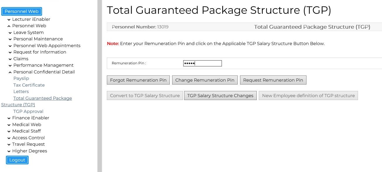 is Logged in that may Apply for a New TGP Salary Structure on behalf of