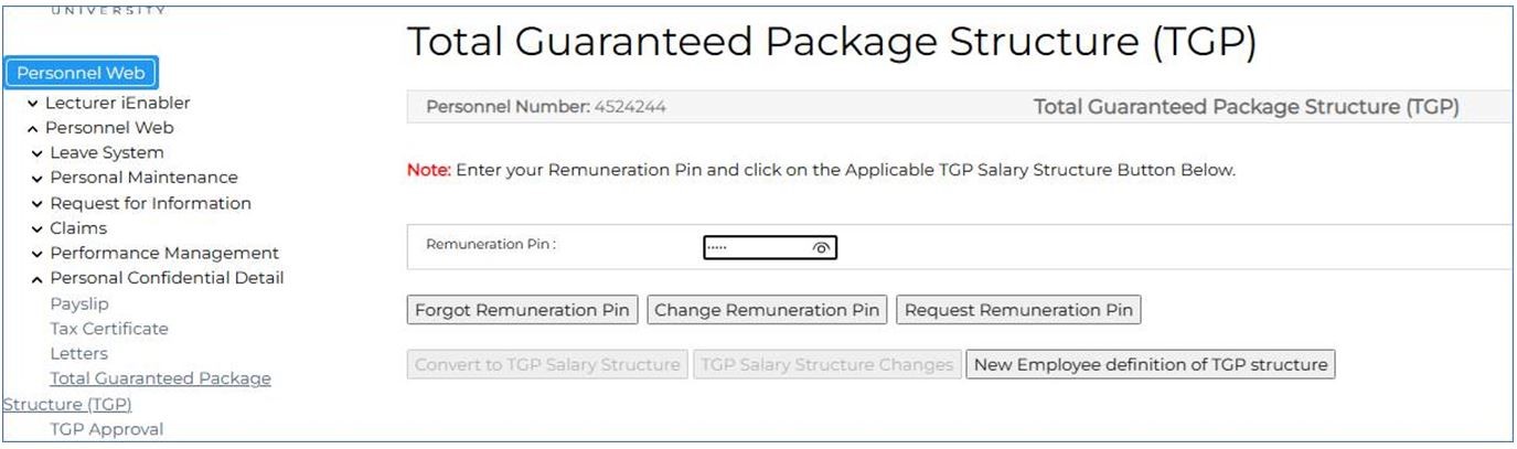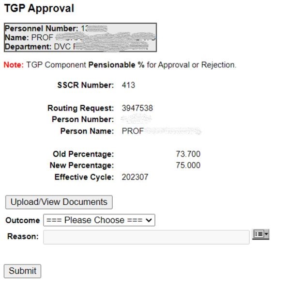 facility for the approval of New Employee TGP Salary Structures, Changes to TGP