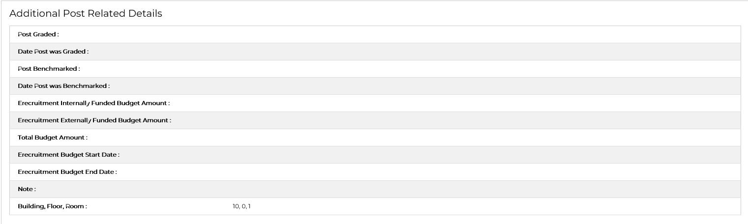 | Department | DISPLAY | Primary Department Code and Description displays as linked to the Post on {PPEO-1} | |||||||||||||||||||||||||||||||||||||||||||||||||||||