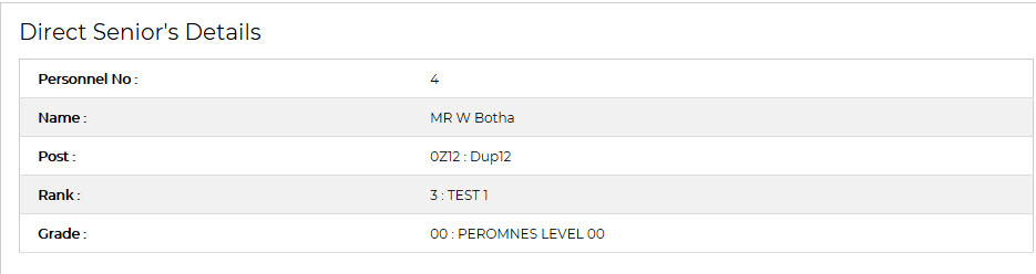 Displays details of personnel senior’s senior {PBOP-1}: Personnel