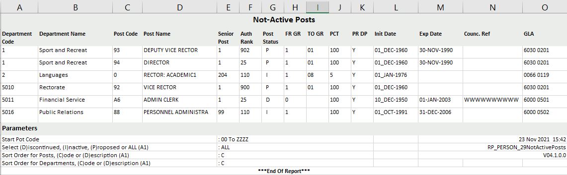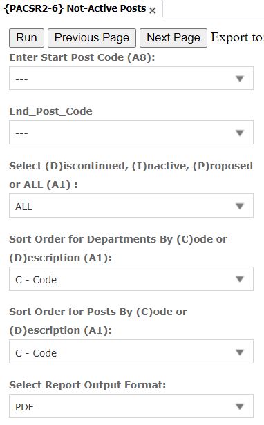 | Sort order for departments: (C)ode or (D)escription. | A1 | ||