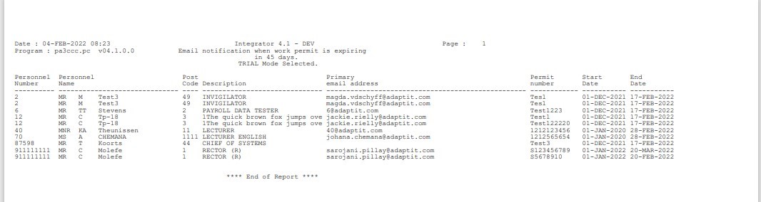 | 7 | Personnel primary email address |