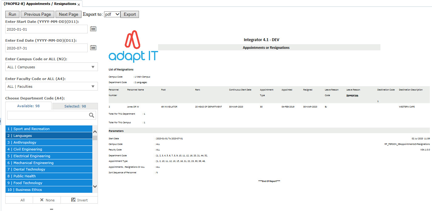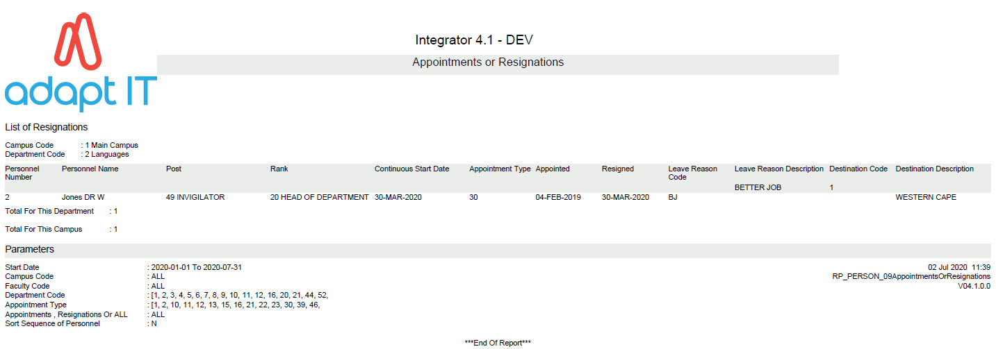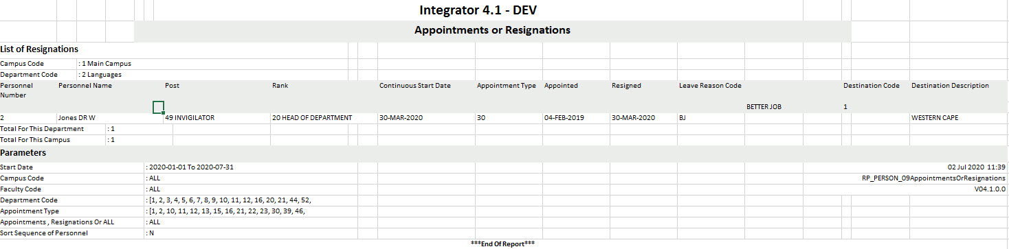 | 2-Jul-2020 | v04.1.0.1 | Kerry-lee Naidoo | t244297 | Additional fields added. i.e. Leaving Reason |