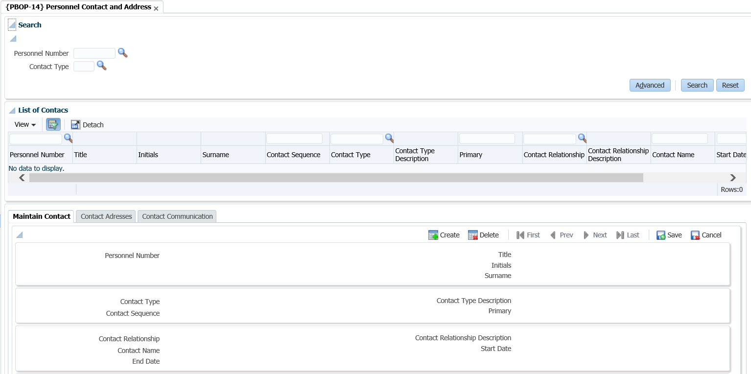 | Personnel Number | N9 | Select an existing staff member from the LOV's {PBOP-1} |