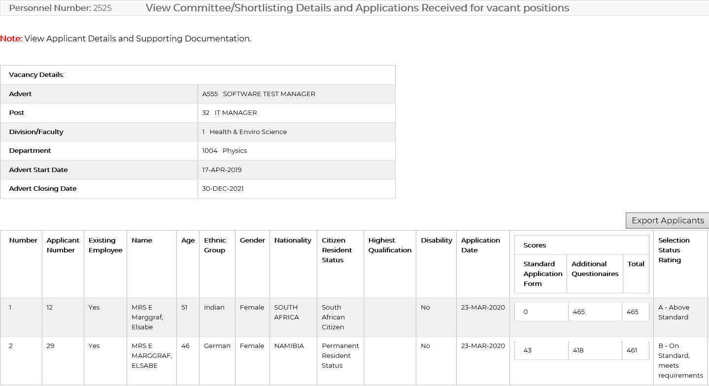 Selection Status Rating 'A', 'B', 'C', 'D' |