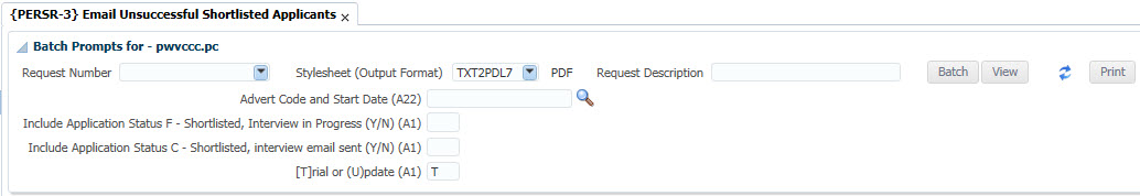 Routing Type 'PER6' (Email Unsuccessful Shortlisted
