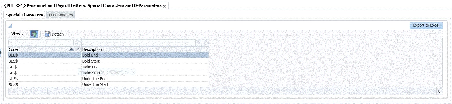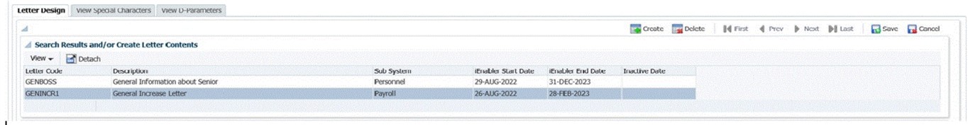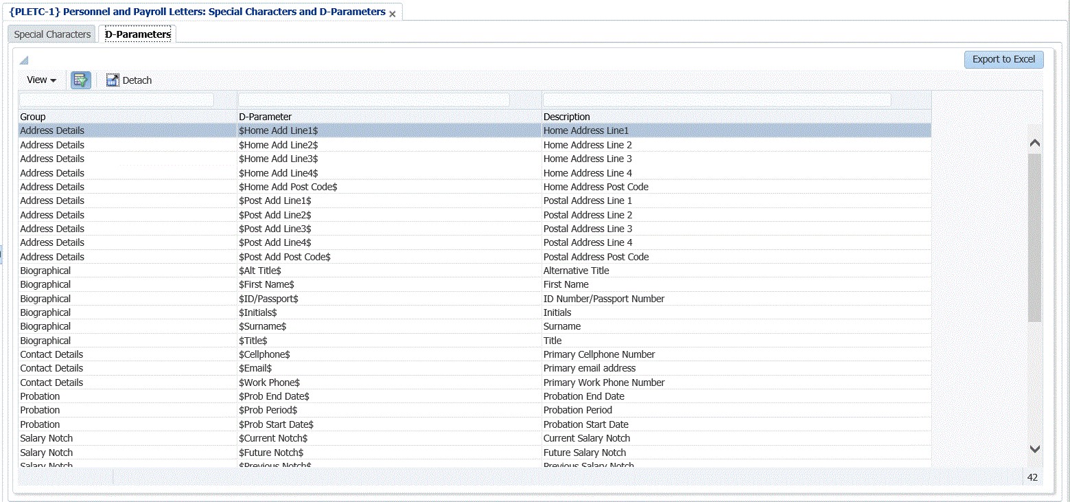| 1. | In this option in Tab 2 and Tab 3 all the possible Special Characters and D-Parameters that may be used in letters that is created. |