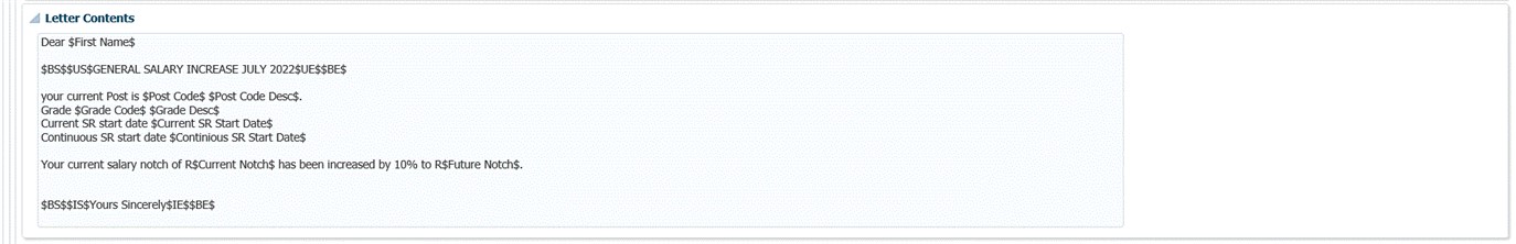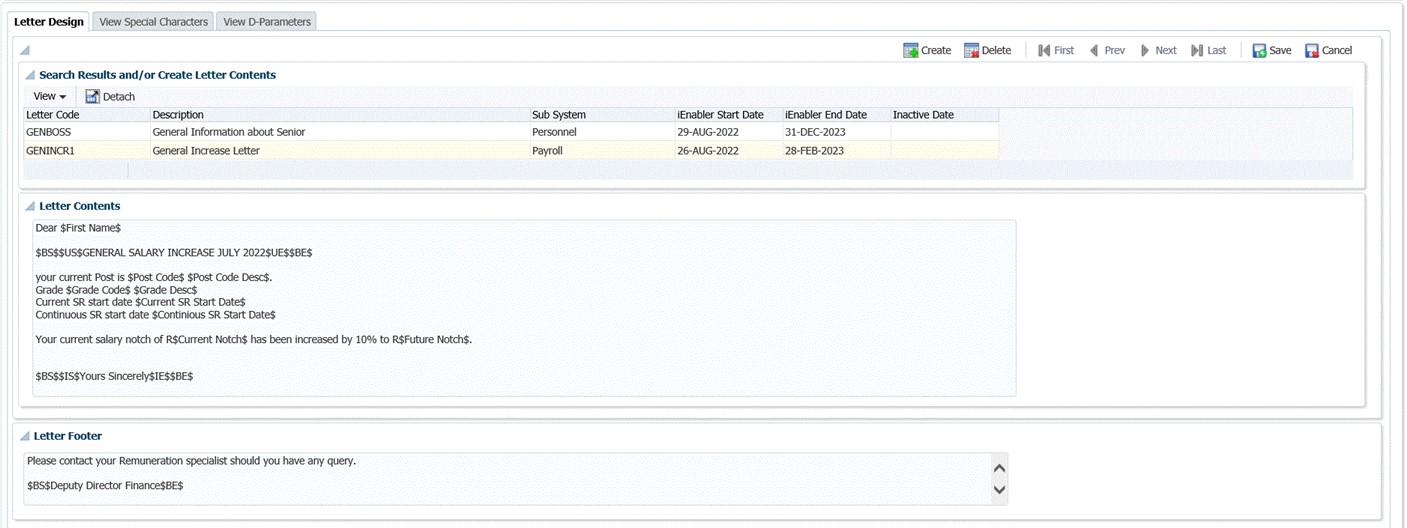 This option is used to design the contents of letters which may be generated for personnel and payroll purposes.