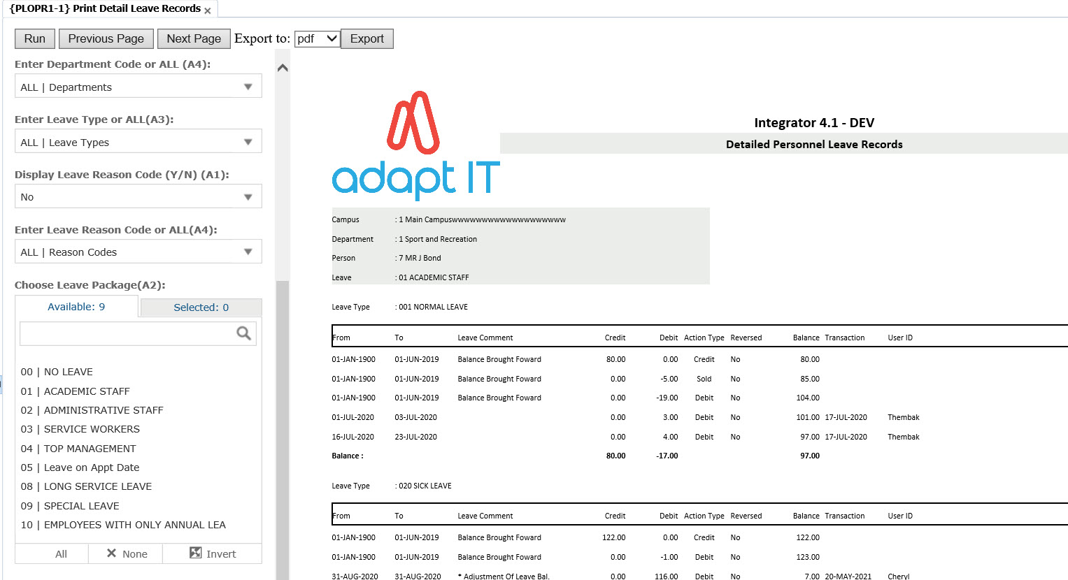 A program to Print Summary Leave Records {PLOPR1-9} is also available.