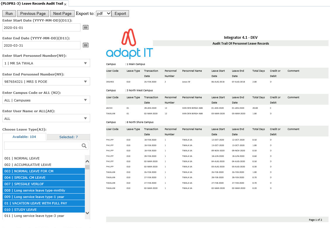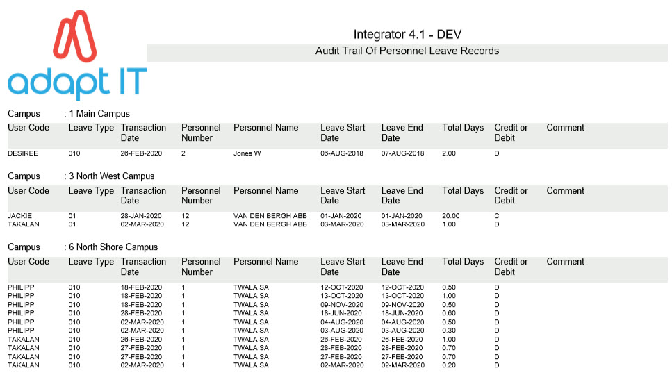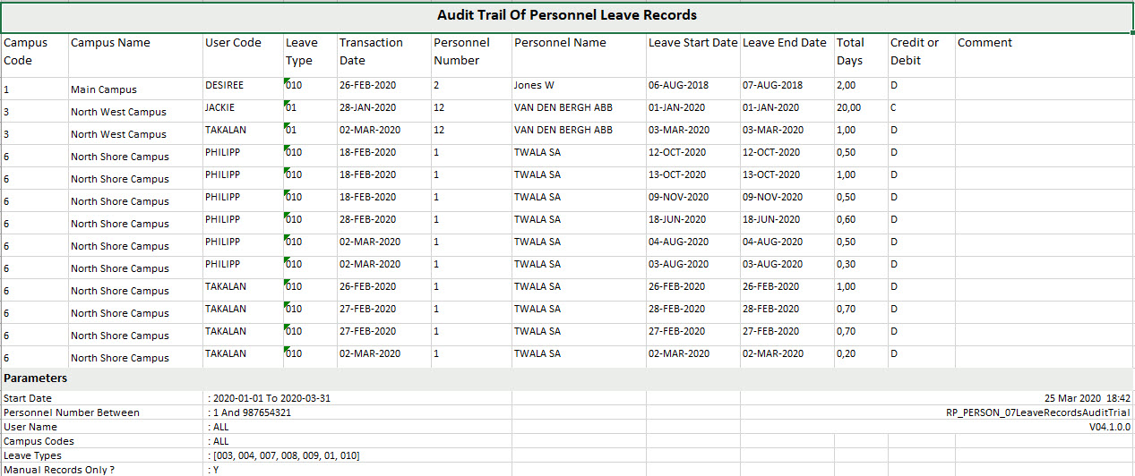 Supply User Name of the Personnel who captured Leave Record or ALL. |
