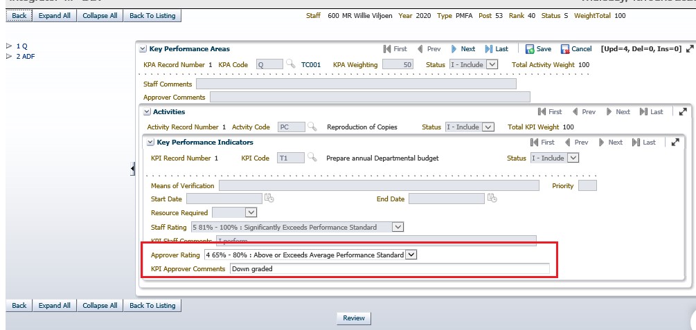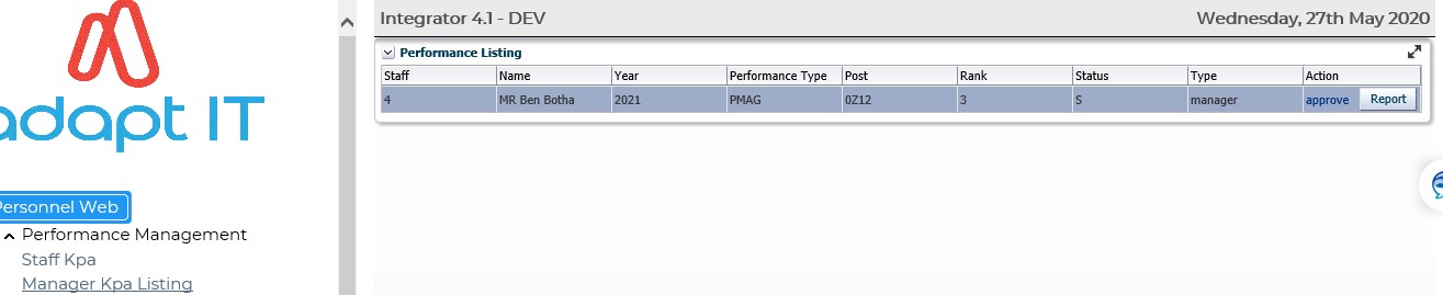 This menu is used by Managers to View and Action a Performance Agreement sent by an Employee.