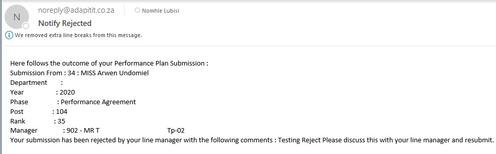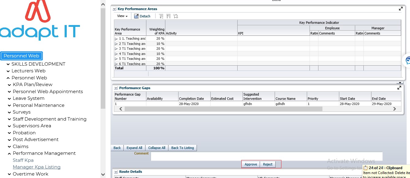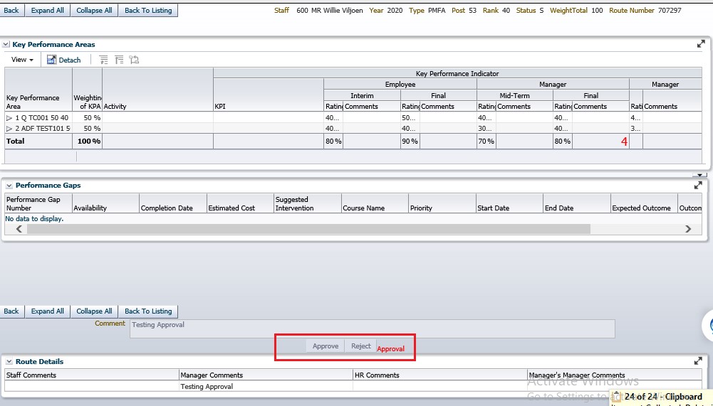 The manager is able to Approve or Reject the Performance Agreement that was sent by the Employee: