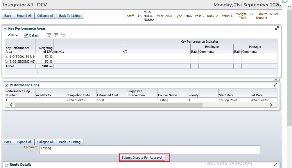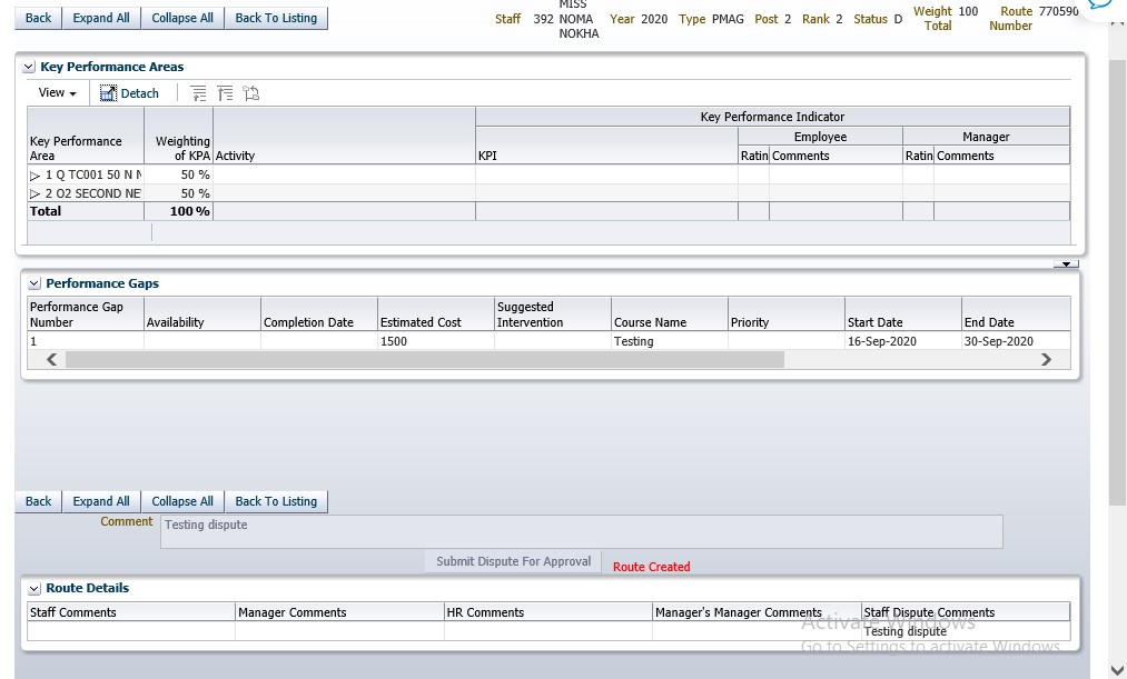 Performance Agreement disputed by Staff member: