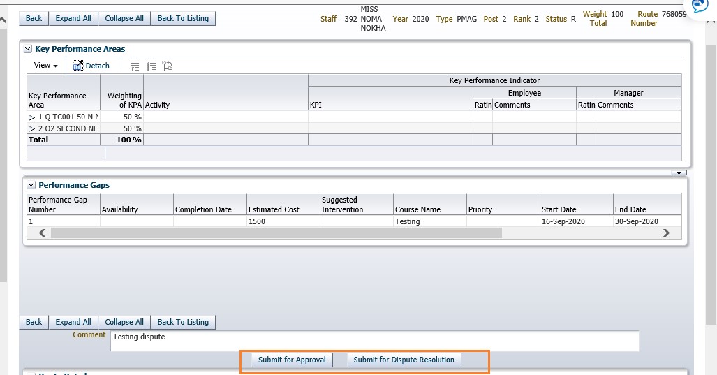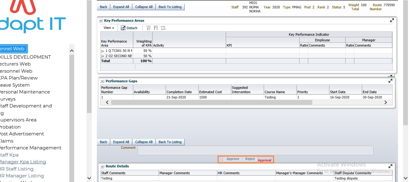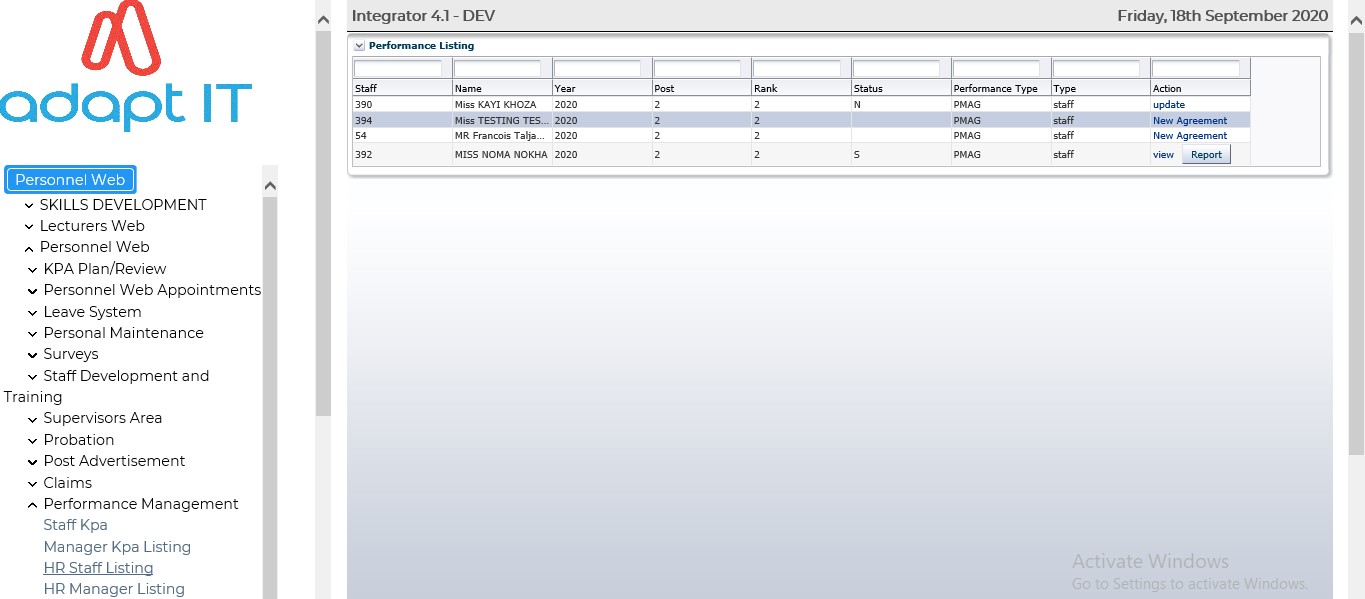 HR Staff are able to create personnel KPA and submit Performance Agreements: