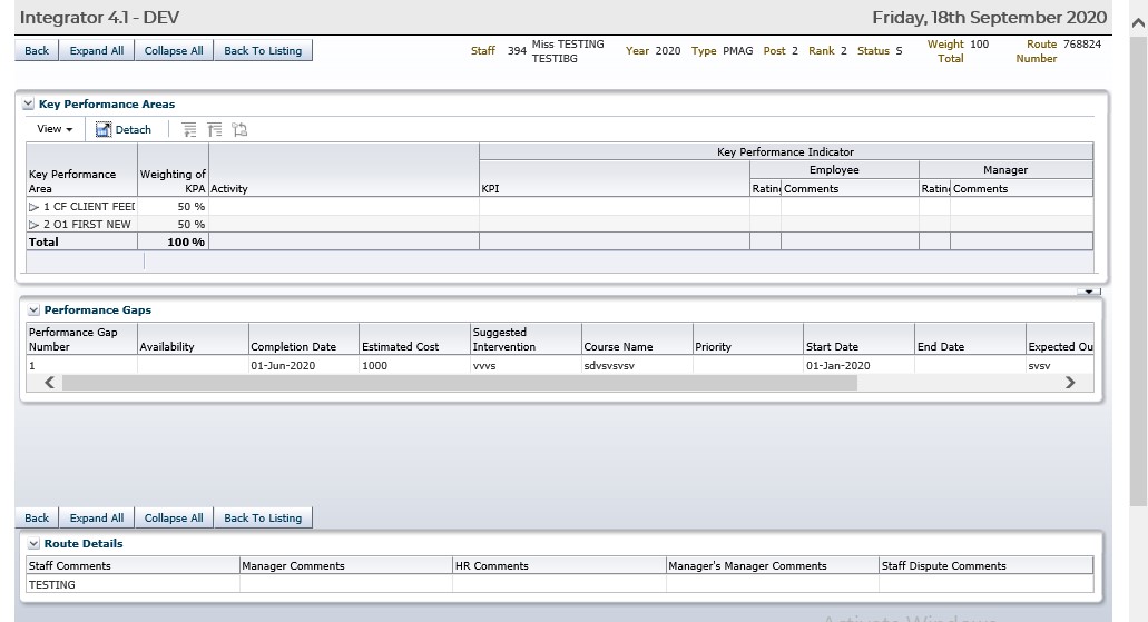Once the new Performance Agreement is submitted, the details of the Routing will appear at the botton of the screen:
