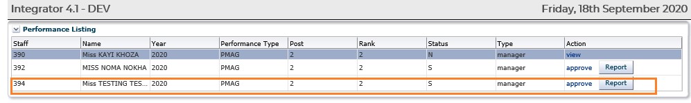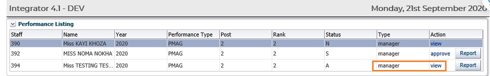 The Manager/Direct Senior will then be able to action Performance Agreement: