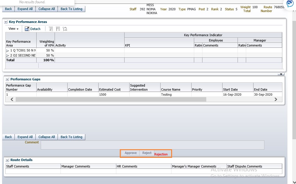 Performance Agreement rejected by Senior/Manager