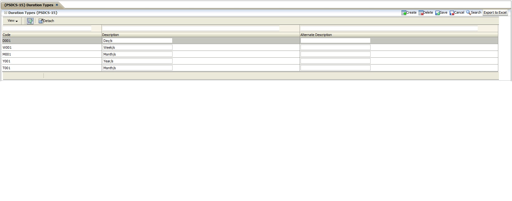 | Alternate Description | A80 | An alternate description of the Duration Type. |