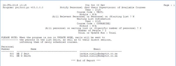The program uses Route type ‘OTRW' to notify personnel via email regarding available courses.