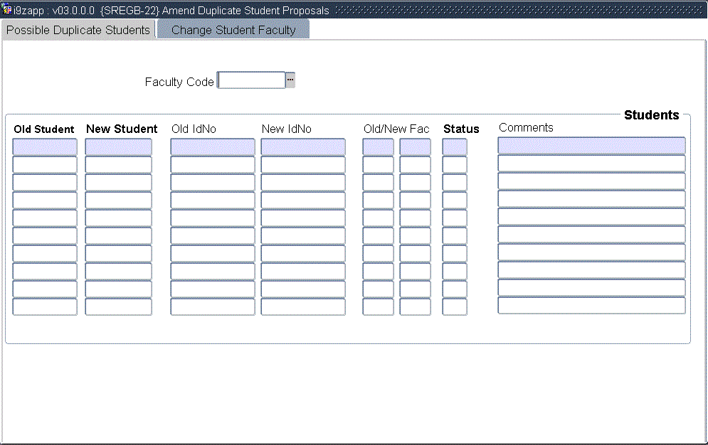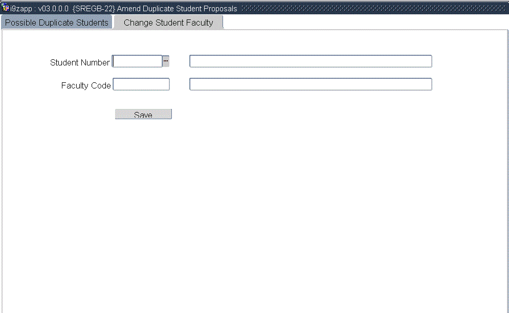 The new 'Faculty' code. If the user enter an 'Faculty' other than the primary registrations faculty, the user will receive the following error message: 'Invalid faculty for the registered primary qualification'. |