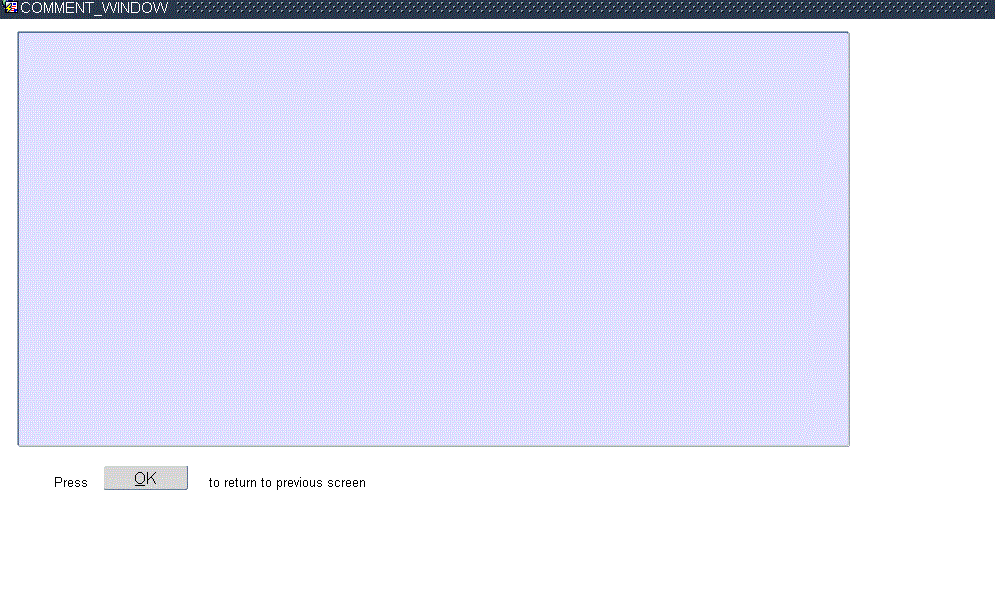 Add comments related to the students. A new page will open to add the comments when the user click on the 'comments' field. Click on the 'OK' button will save and close the comments page and returned to the 'Possible Duplicate Students' tab.